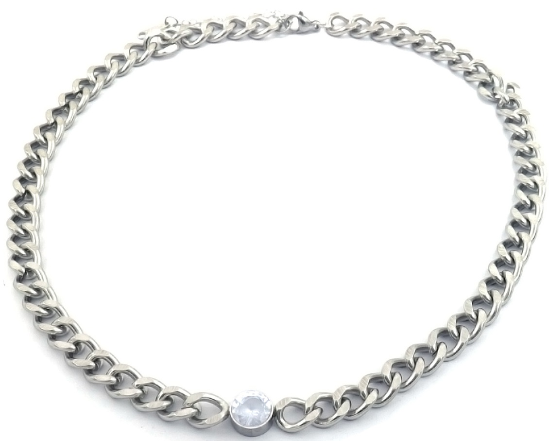 A-A4.2 N088-062S S. Steel Necklace 39-44cm White CZ