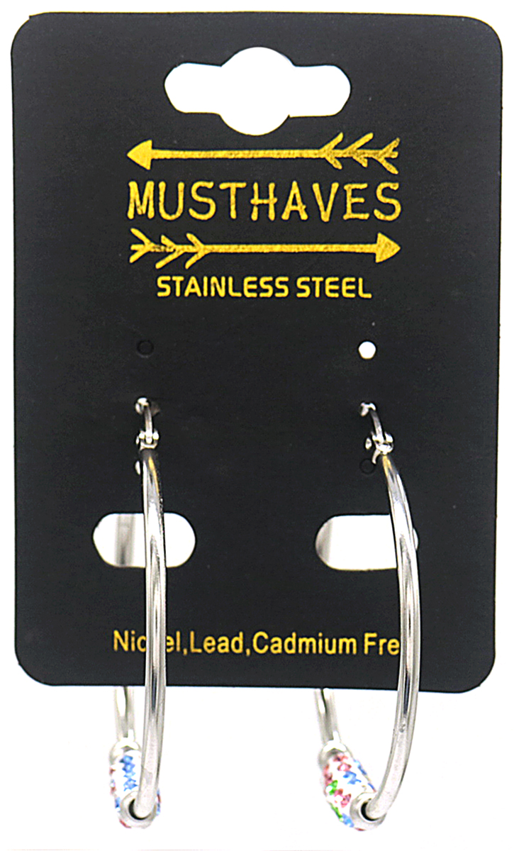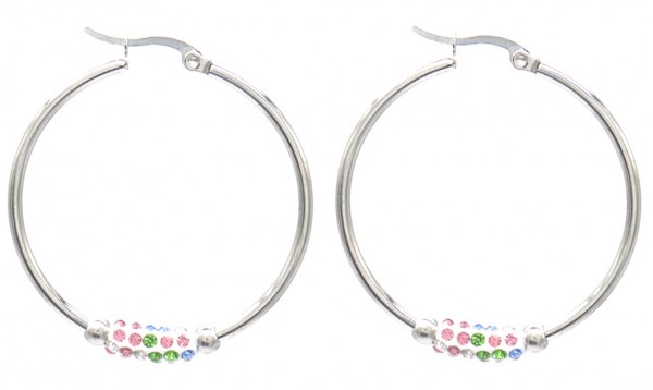 A-B10.1 E041-008S S. Steel Earrings Crystals 4cm Silver-Multi