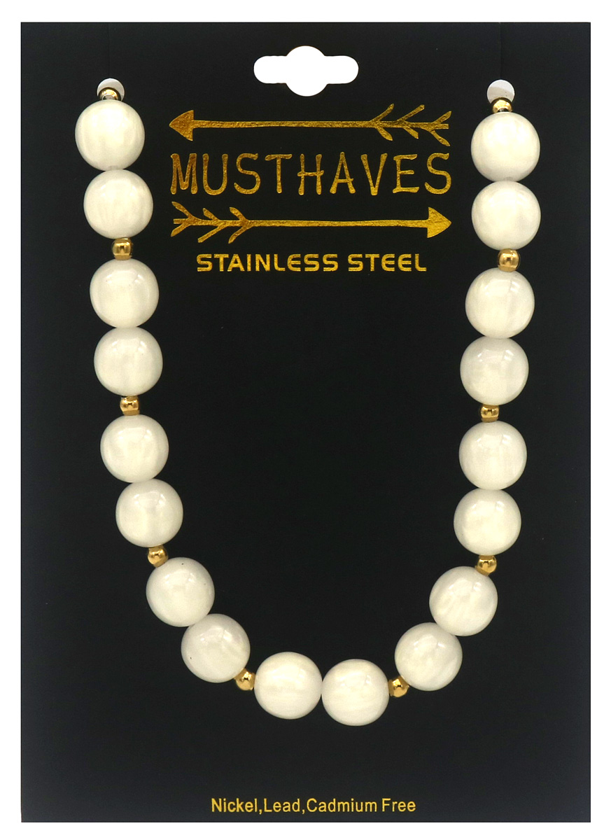 Productinformatie "A-B13.1 N1144-008-1 S. Steel Necklace 10mm Beads 40-45cm White"