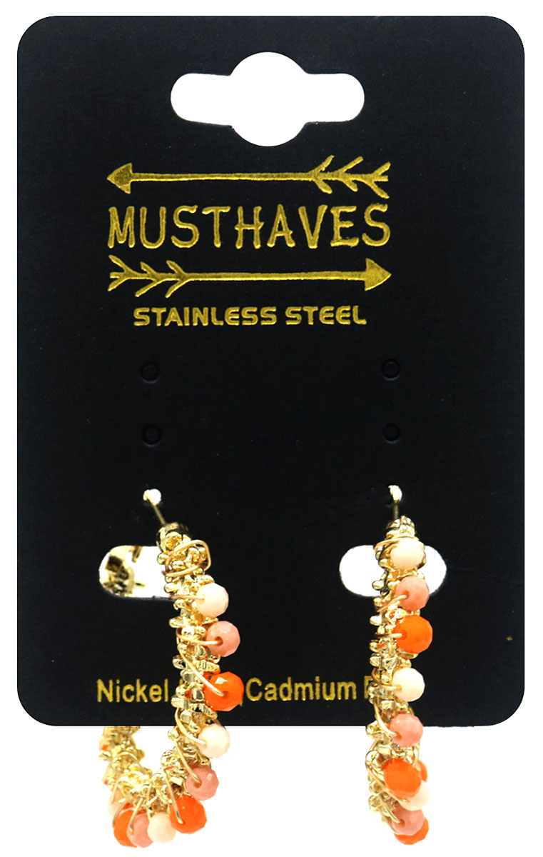 A-B16.1 E221-487 S. Steel Earring Glassbeads 3.5cm Orange