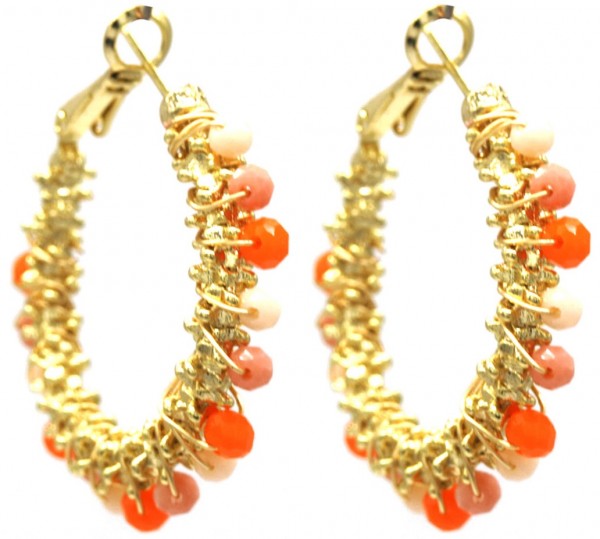 Productinformatie "A-B16.1 E221-487 S. Steel Earring Glassbeads 3.5cm Orange"