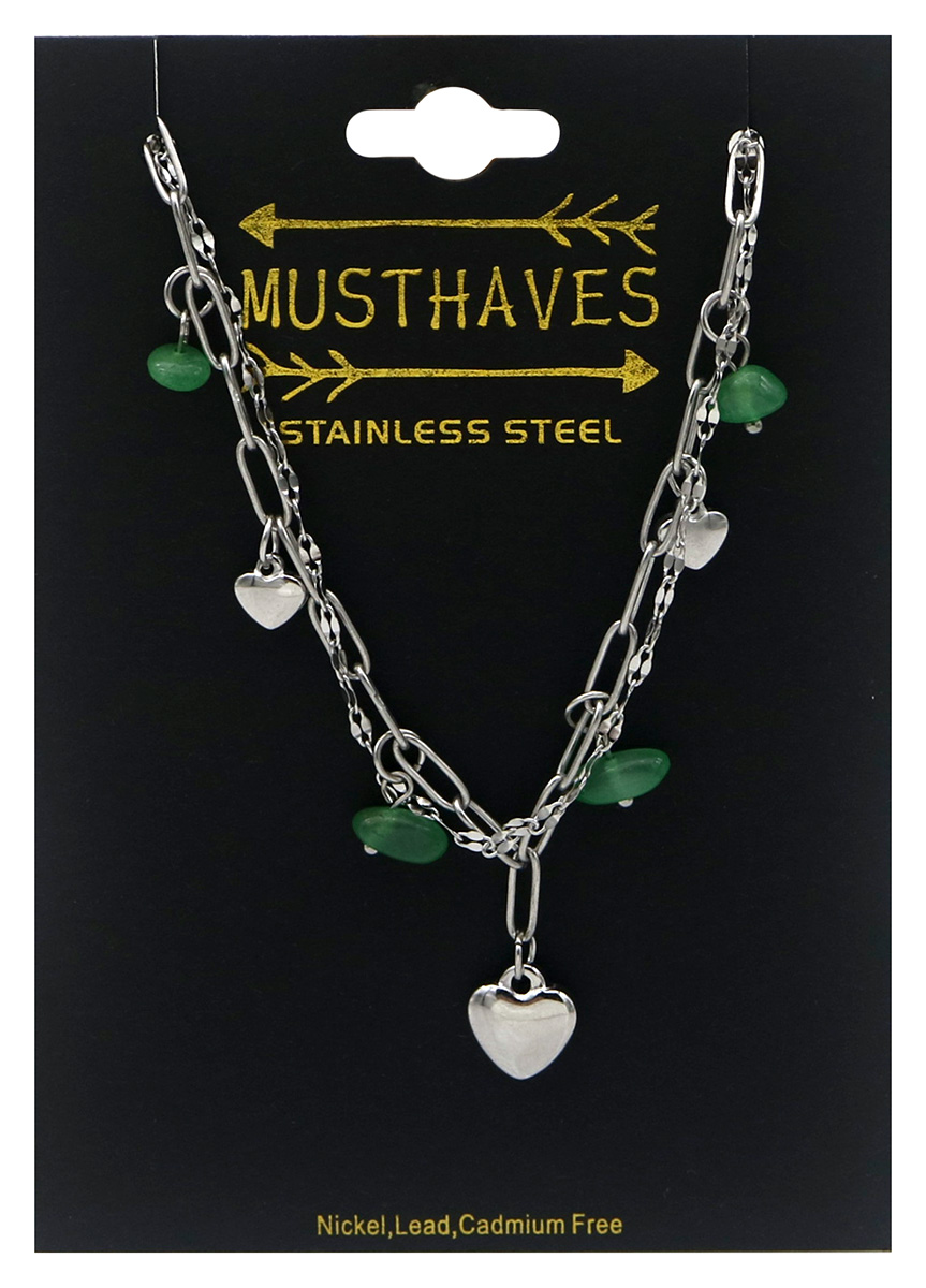 A-B23.1 B2583-032S-4 S. Steel Bracelet Hearts - Stones 16-21cm Green