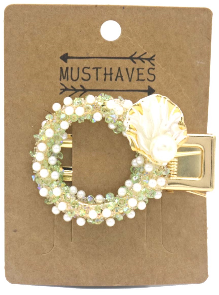 A-D23.1 H814-001-6 Hair Clip 5x4cm Pearls Green