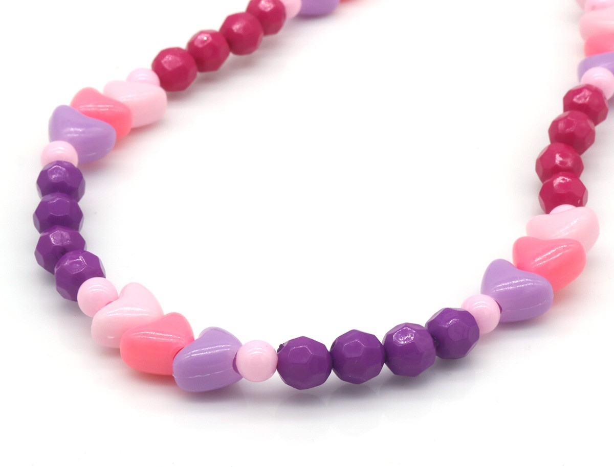 Productinformatie "A-E1.2 K3-ZSN030 Bijoux Ketting Roze-Paars met Hartjes"