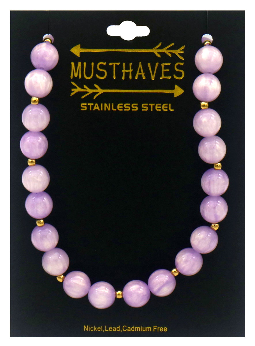 Productinformatie "A-E26.1 N1144-008-2 S. Steel Necklace 10mm Beads 40-45cm Purple"