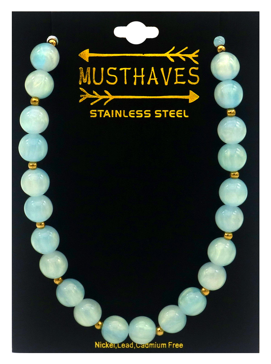 Productinformatie "A-F25.1 N1144-008-5 S. Steel Necklace 10mm Beads 40-45cm Blue"
