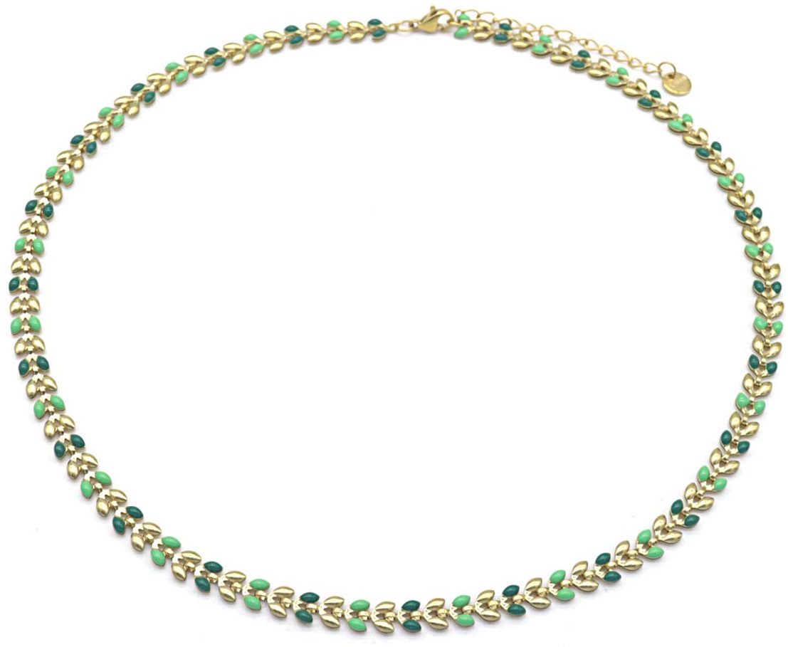 Productinformatie "B-A2.1 N835-026G S. Steel Necklace Leaves Green"