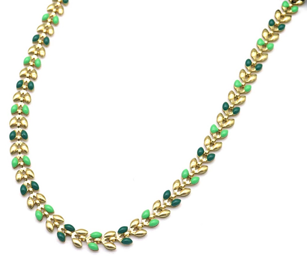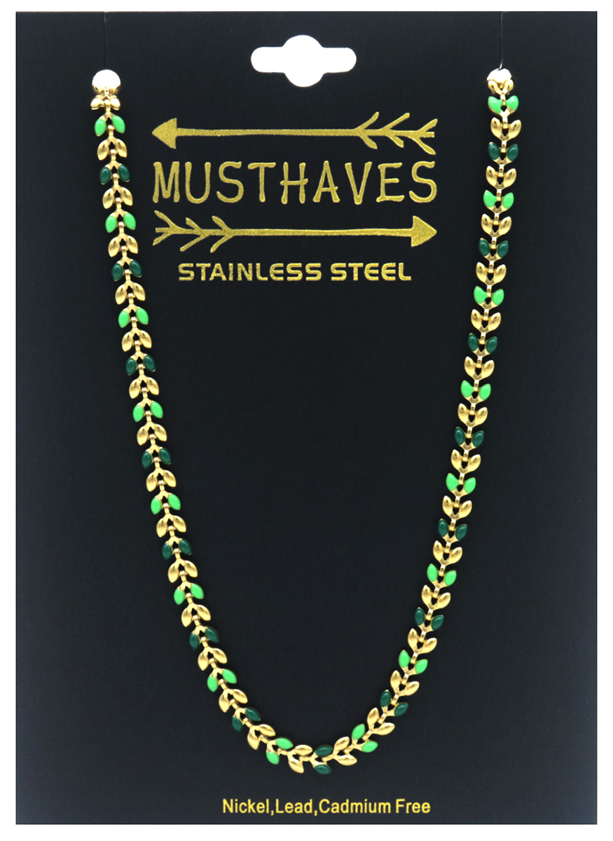 B-A2.1 N835-026G S. Steel Necklace Leaves Green