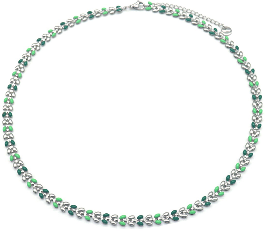 Productinformatie "B-B2.2 N835-026S S. Steel Necklace Leaves Green"