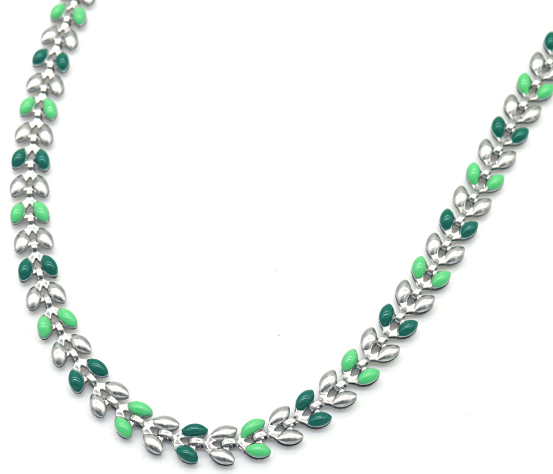 B-B2.2 N835-026S S. Steel Necklace Leaves Green