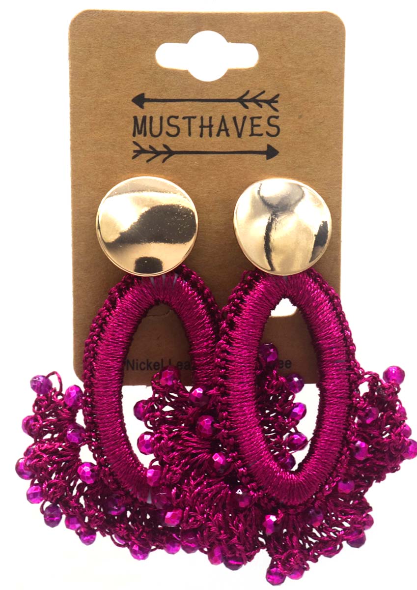 B-B22.2 E1668-001 No. 2 Earrings Glassbeads 7cm Purple