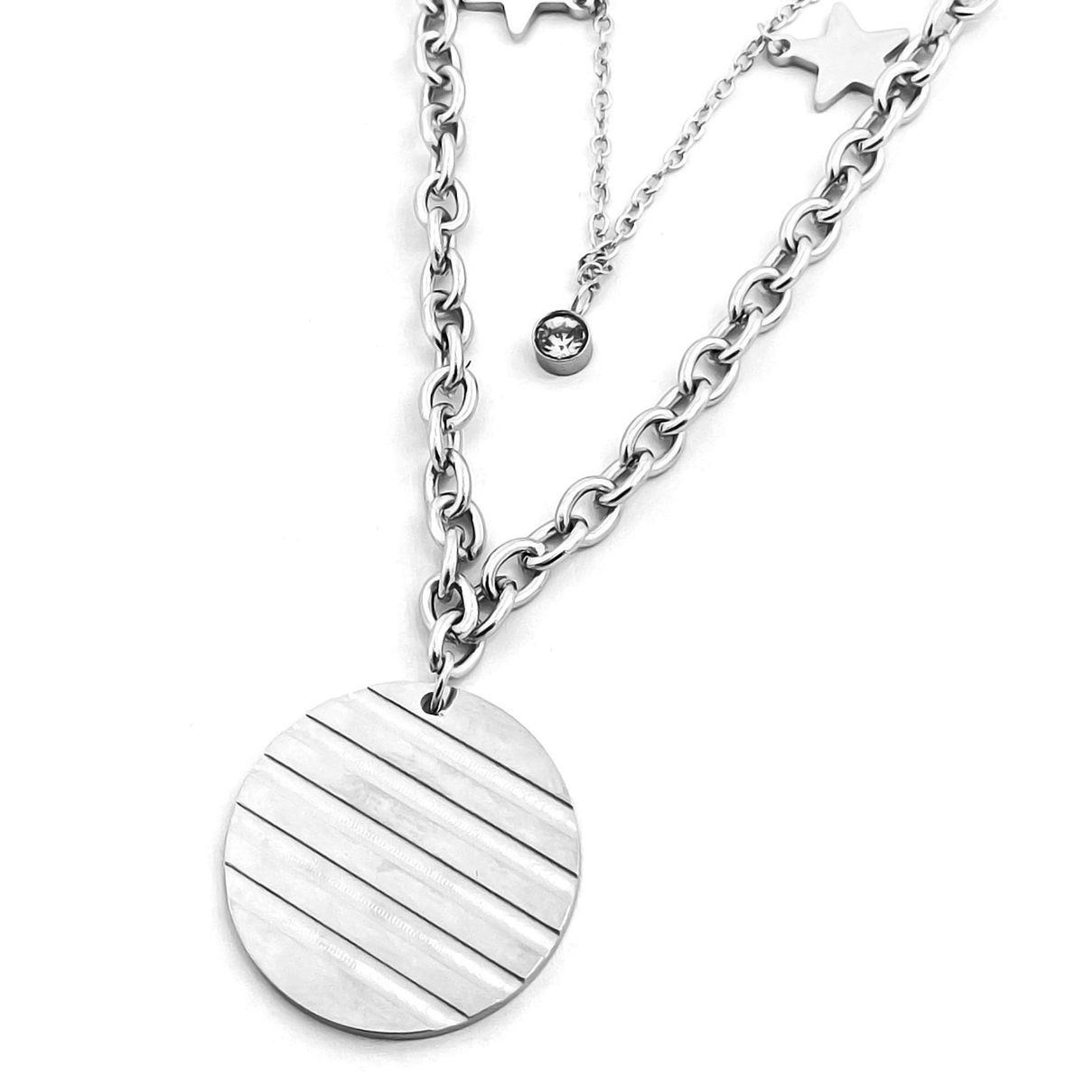 Productinformatie "B-B3.2 N042-041S S. Steel Layered Necklace Stars and Coin"