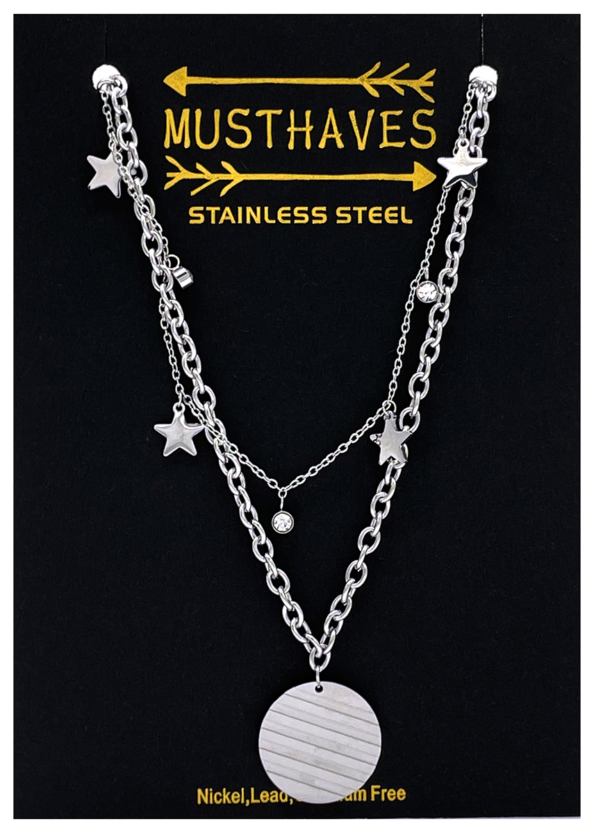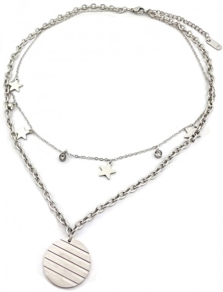 B-B3.2 N042-041S S. Steel Layered Necklace Stars and Coin