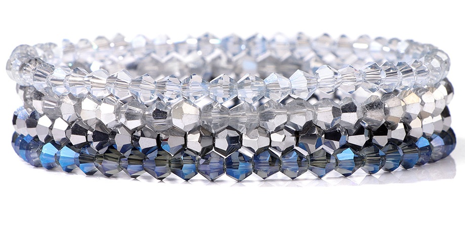 B-C17.5 B2565-004-1 Faceted Glass Bracelets 4mm - Set 4pcs Grey