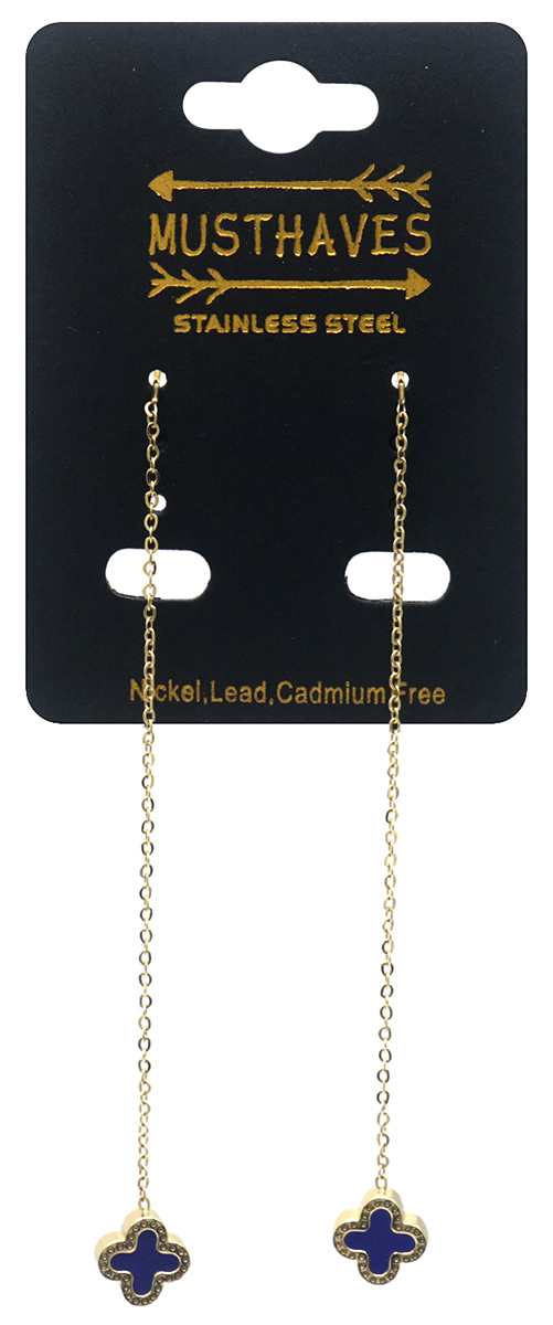 B-D18.3 E089-004G S. Steel Pull Through Earrings Blue