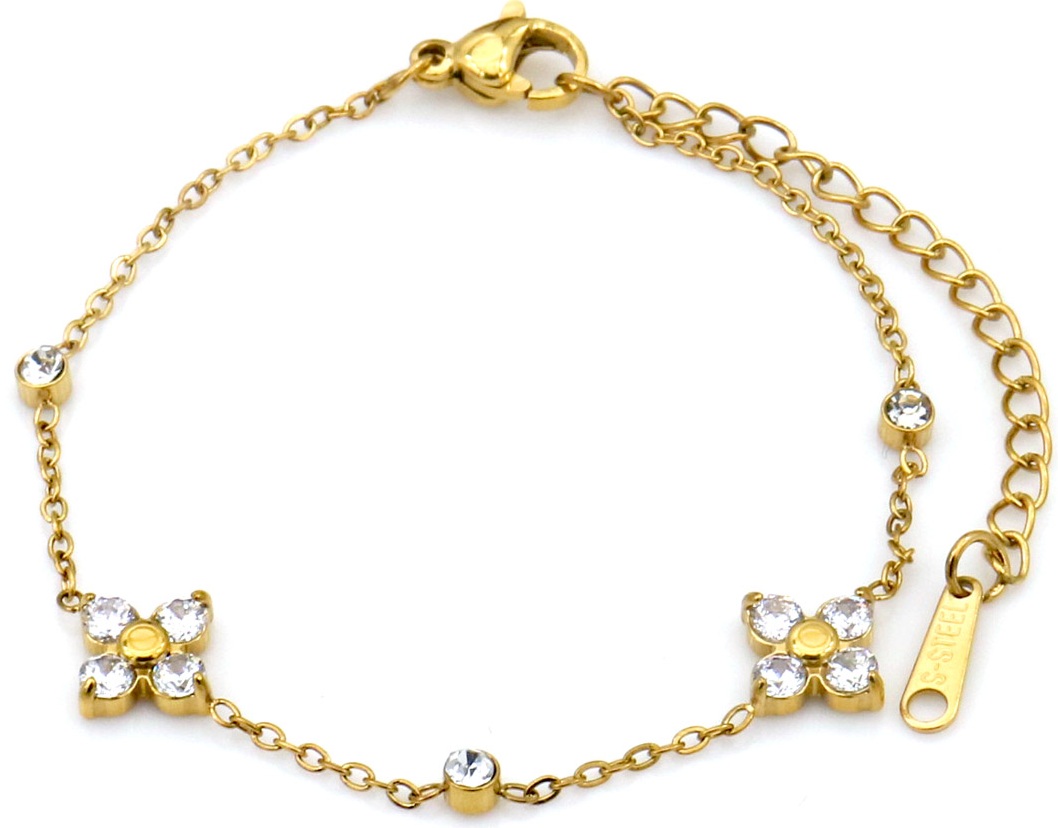 Productinformatie "B-D8.2 B2616-070G S. Steel Bracelet Flowers Crystal 16-21cm"