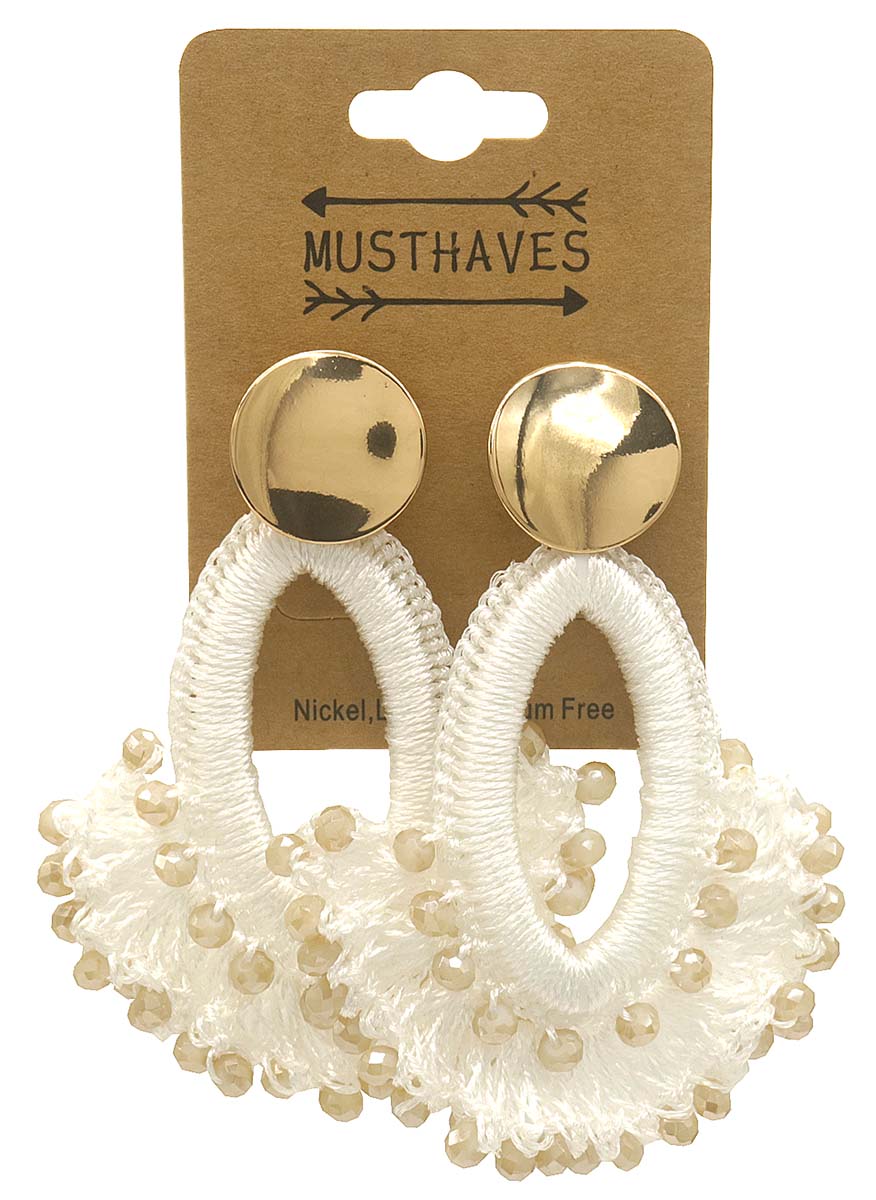 B-D9.3 E1668-001 No. 4 Earrings Glassbeads 7cm White