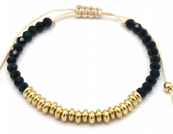 B-E17.5 B1654-009 Glassbeads with Metal Bracelet Black