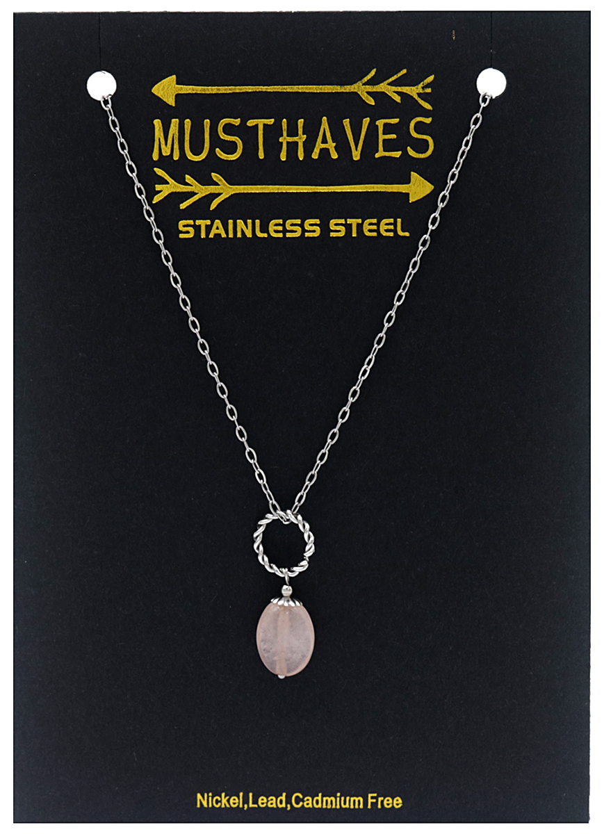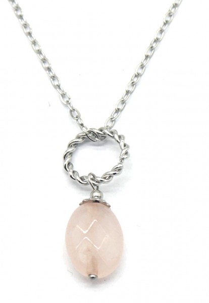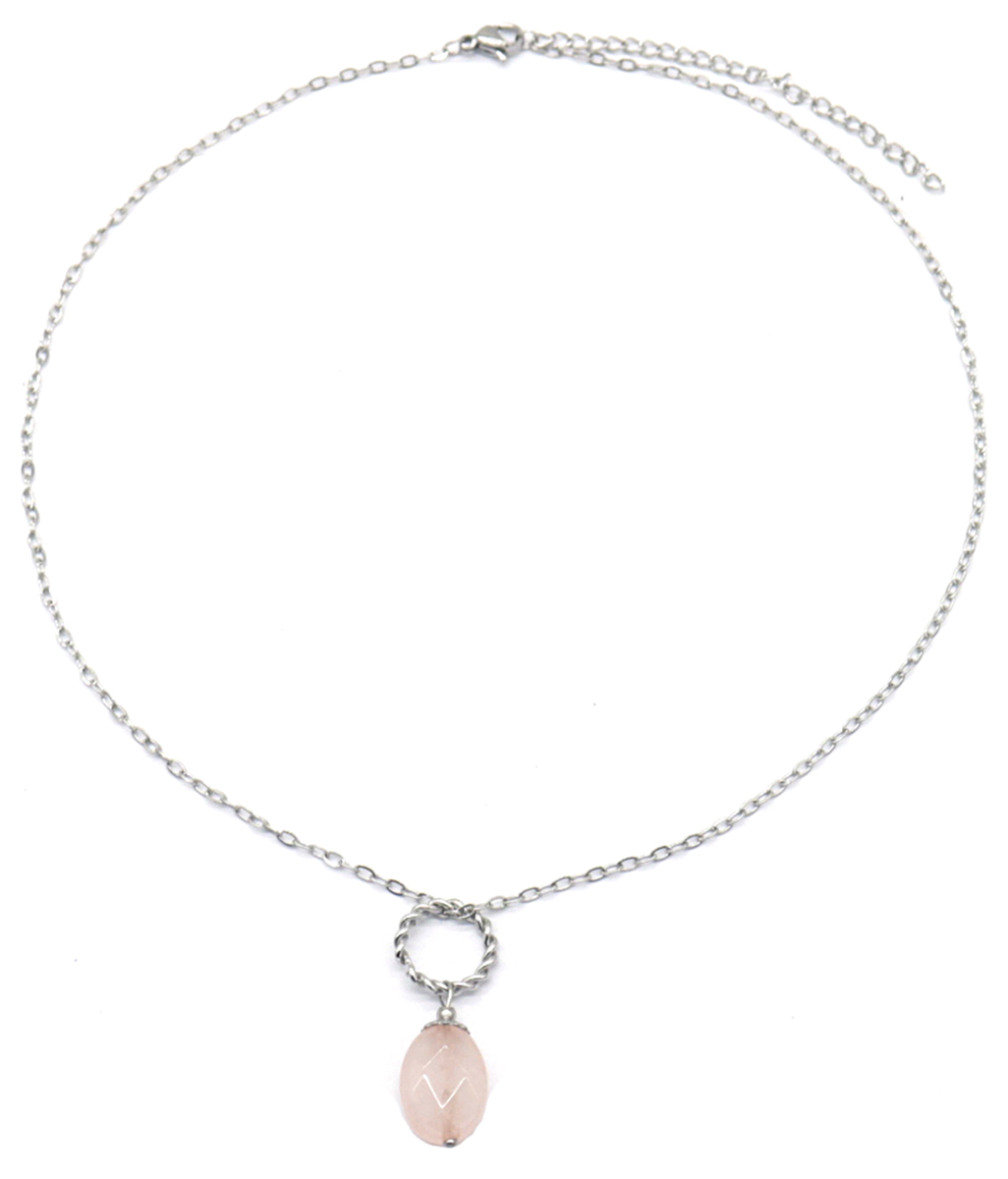 B-E21.2 N031-010S S. Steel Necklace Rose Quartz