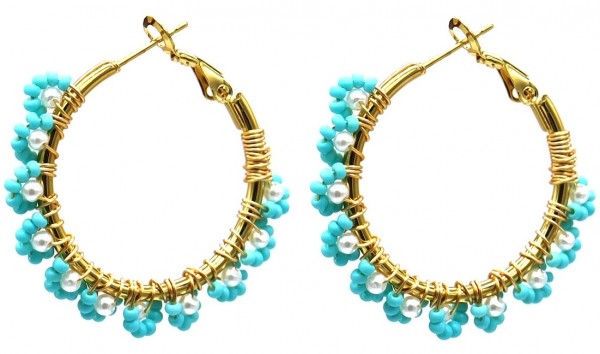 B-E4.1 E221-494 S. Steel Earrings 3.6cm Flowers Blue