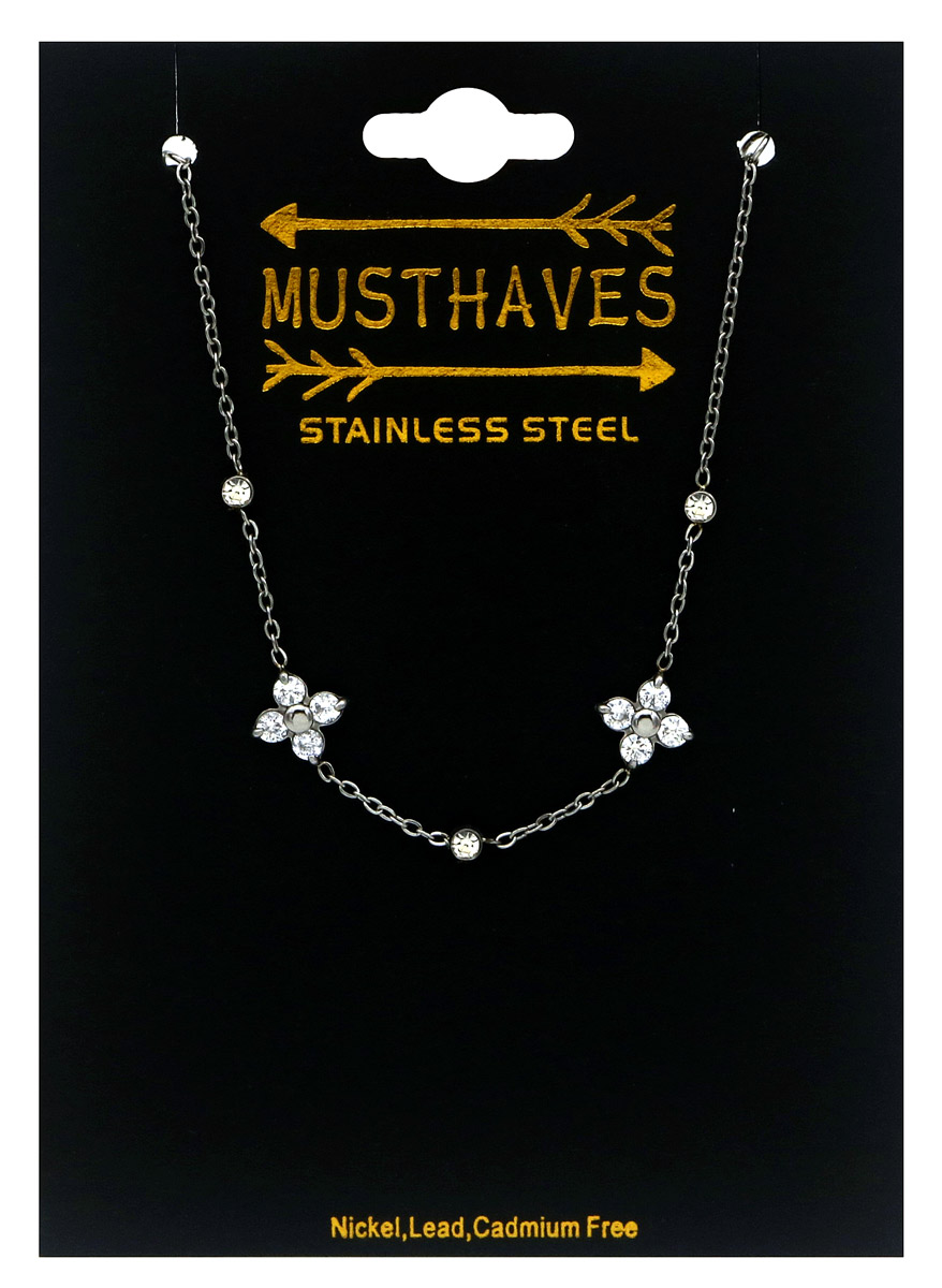 B-E6.1 B2616-070S S. Steel Bracelet Flowers Crystal 16-21cm