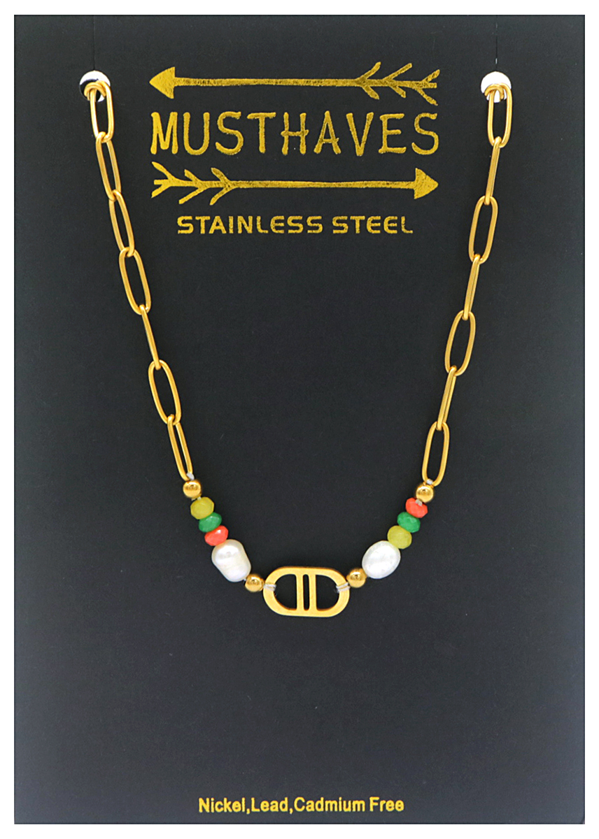 B-F18.5 N221-307 S. Steel Necklace Freshwater Pearl Multi 40-45cm