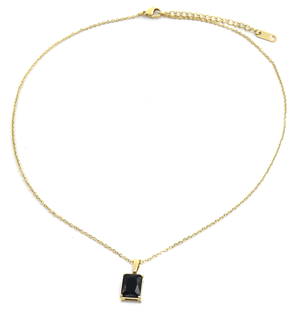 B-F6.3 N042-015G S. Steel Neclace with 1cm CZ Black