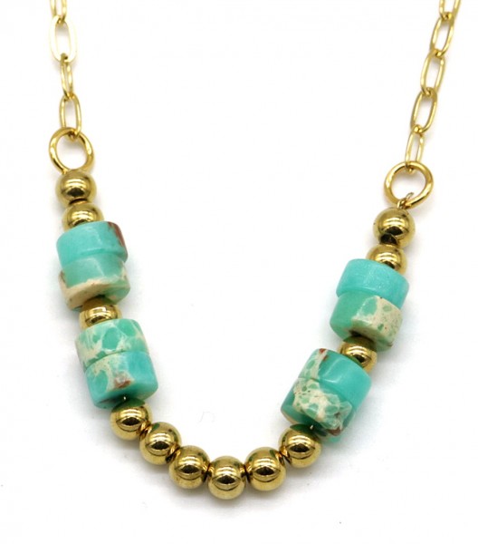 C-B15.3 N062-013G S. Steel Necklace Stones Turqoise
