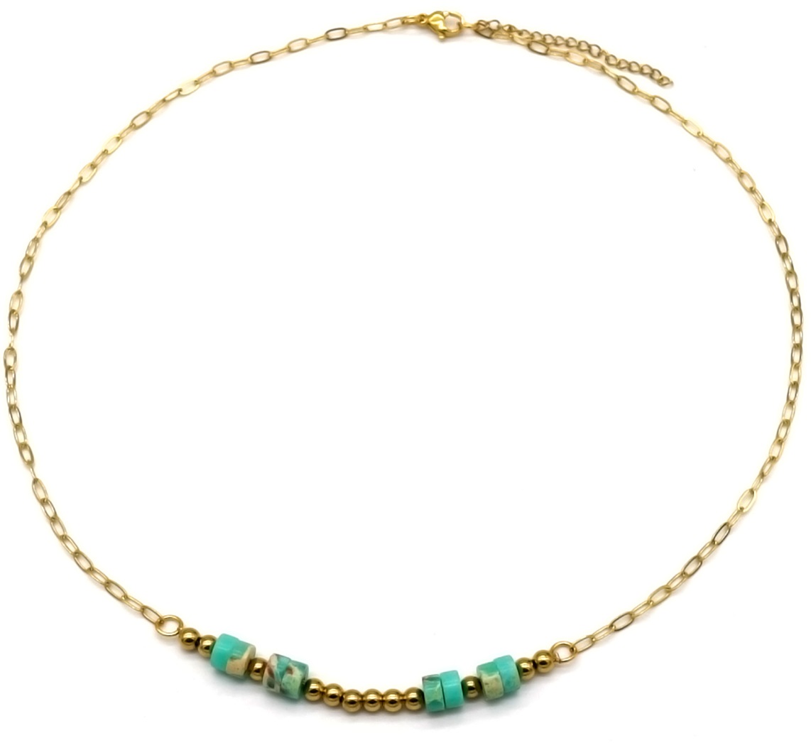 Productinformatie "C-B15.3 N062-013G S. Steel Necklace Stones Turqoise"