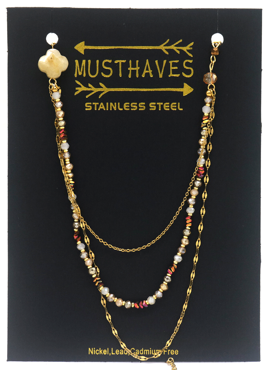 C-C3.3 N221-363 No. 2 S. Steel Necklace Layered Brown