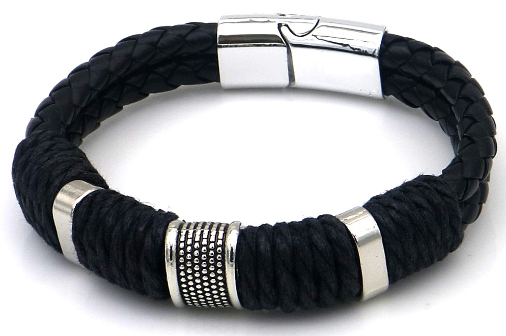 C-C7.2 B25104-007-2 PU Bracelet 21cm Black-Silver
