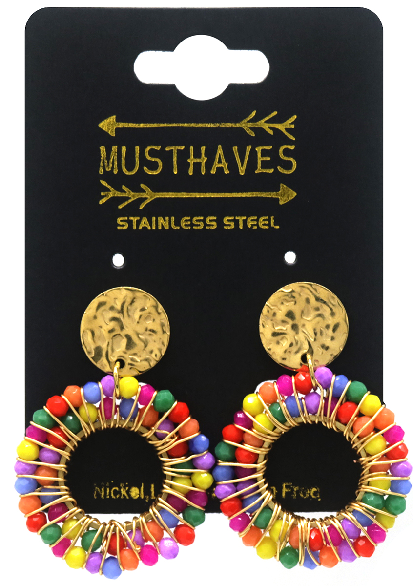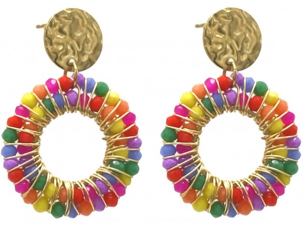 C-F17.1 E221-473 S. Steel Earrings Glassbeads 3.5x2.5cm Multi