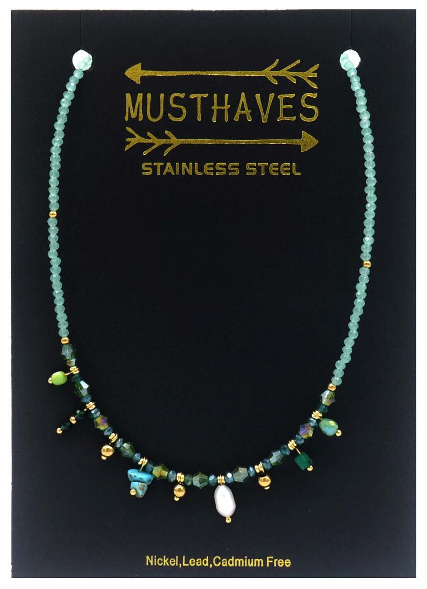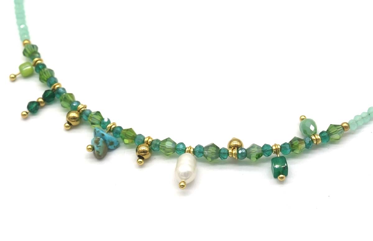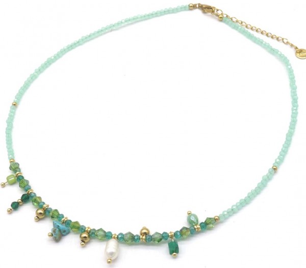 Productinformatie "D-B21.2 N221-327 S. Steel Necklace Glassbeads Blue 39-44cm"