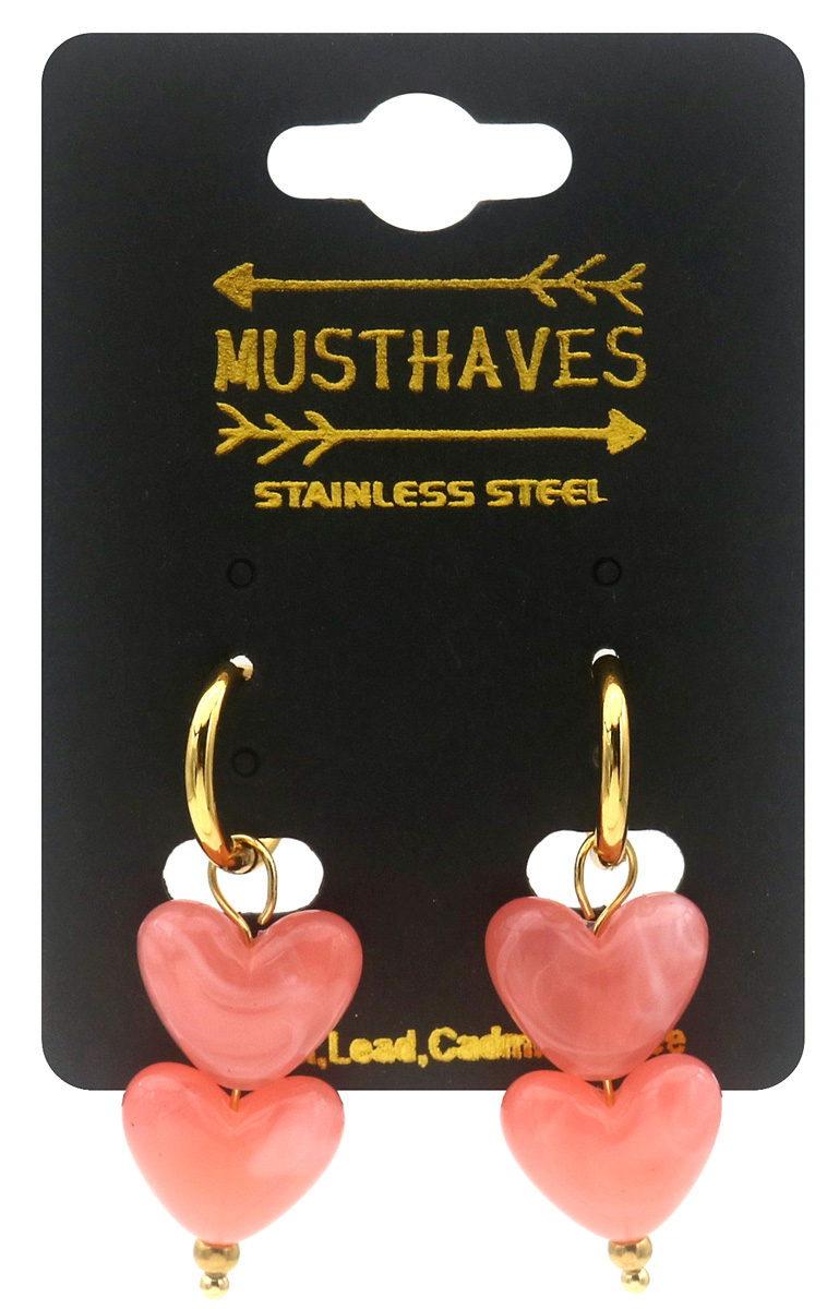 D-C18.1 E1144-001-7 S. Steel Earrings 4cm Hearts Pink