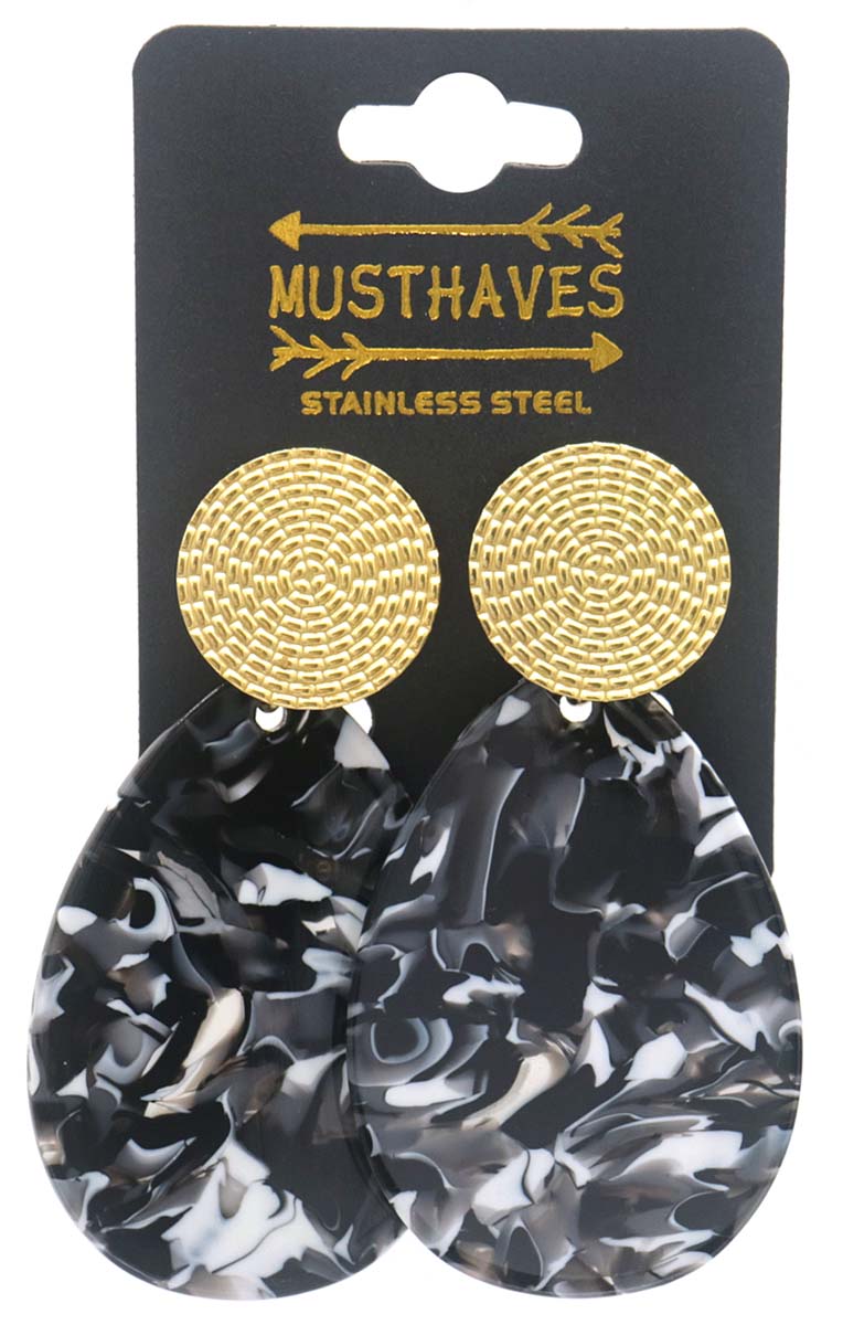 D-C7.5 E221-536 No. 10 S. Steel Earrings 6.5x3.5cm Black