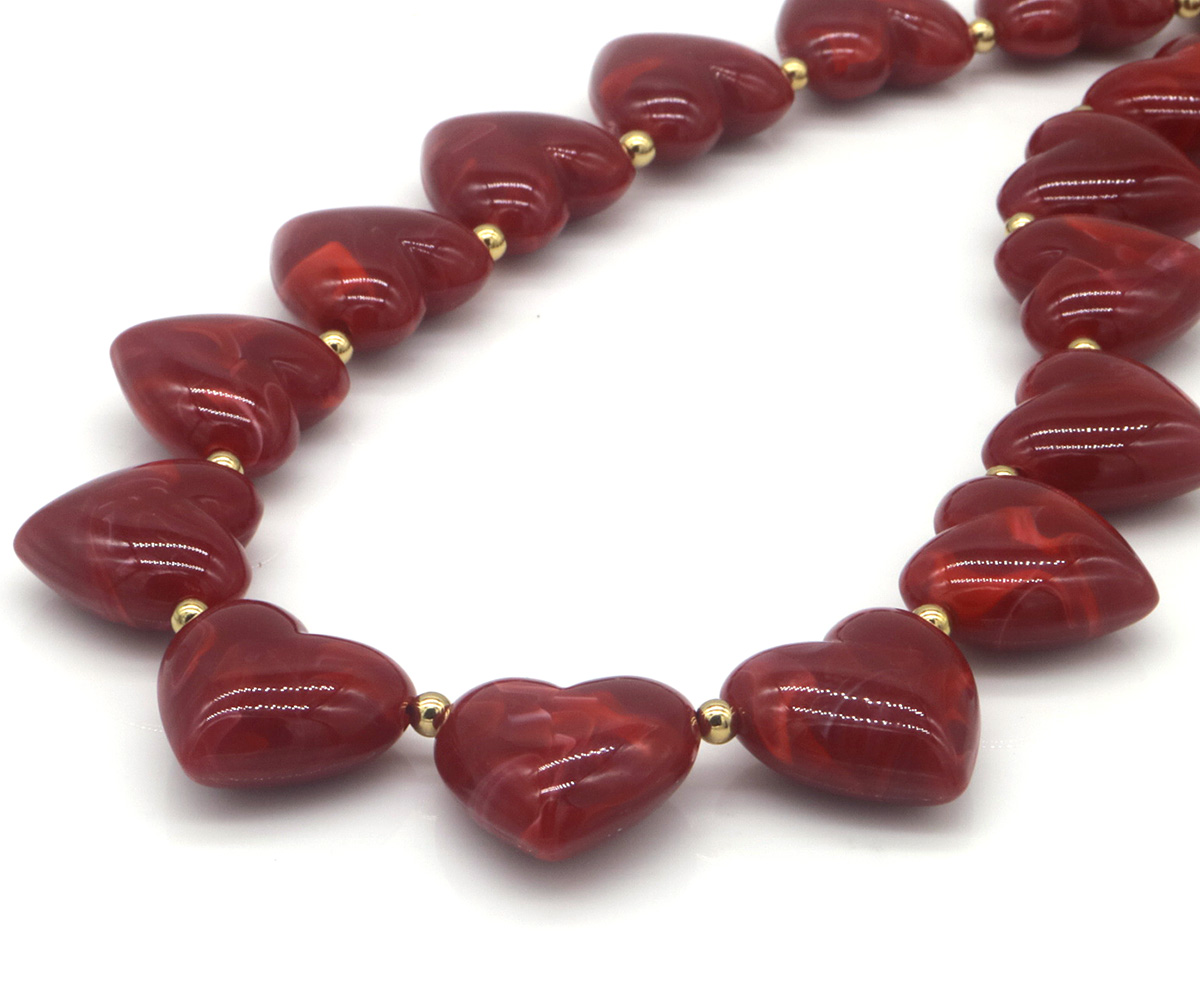 D-E1.1 N2582-002-5 S. Steel Necklace 40-45 cm Acrylic Hearts Bordeaux