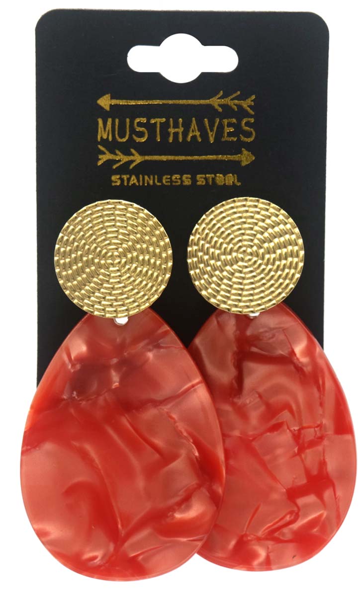 Productinformatie "D-E17.5 E221-536 No. 2 S. Steel Earrings 6.5x3.5cm Red"