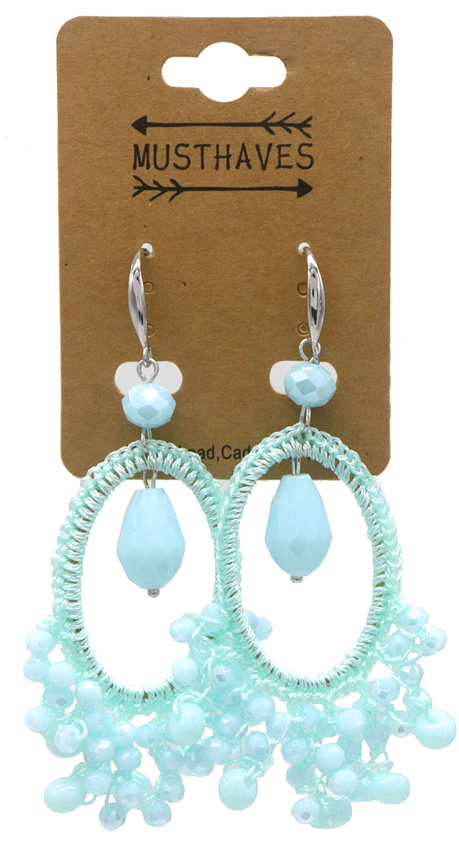 E-A20.5 E007-053A Earrings Faceted Glass 8.5x3cm Mint
