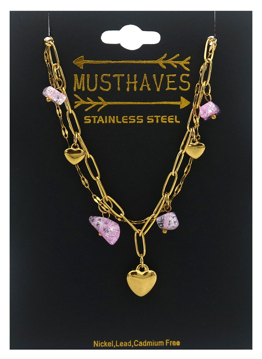 E-C17.1 B2583-032G-1 S. Steel Bracelet Hearts - Stones 16-21cm