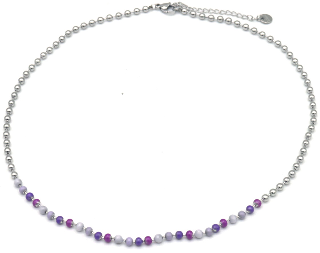 E-C8.3 N835-020S S. Steel Necklace Stones Purple