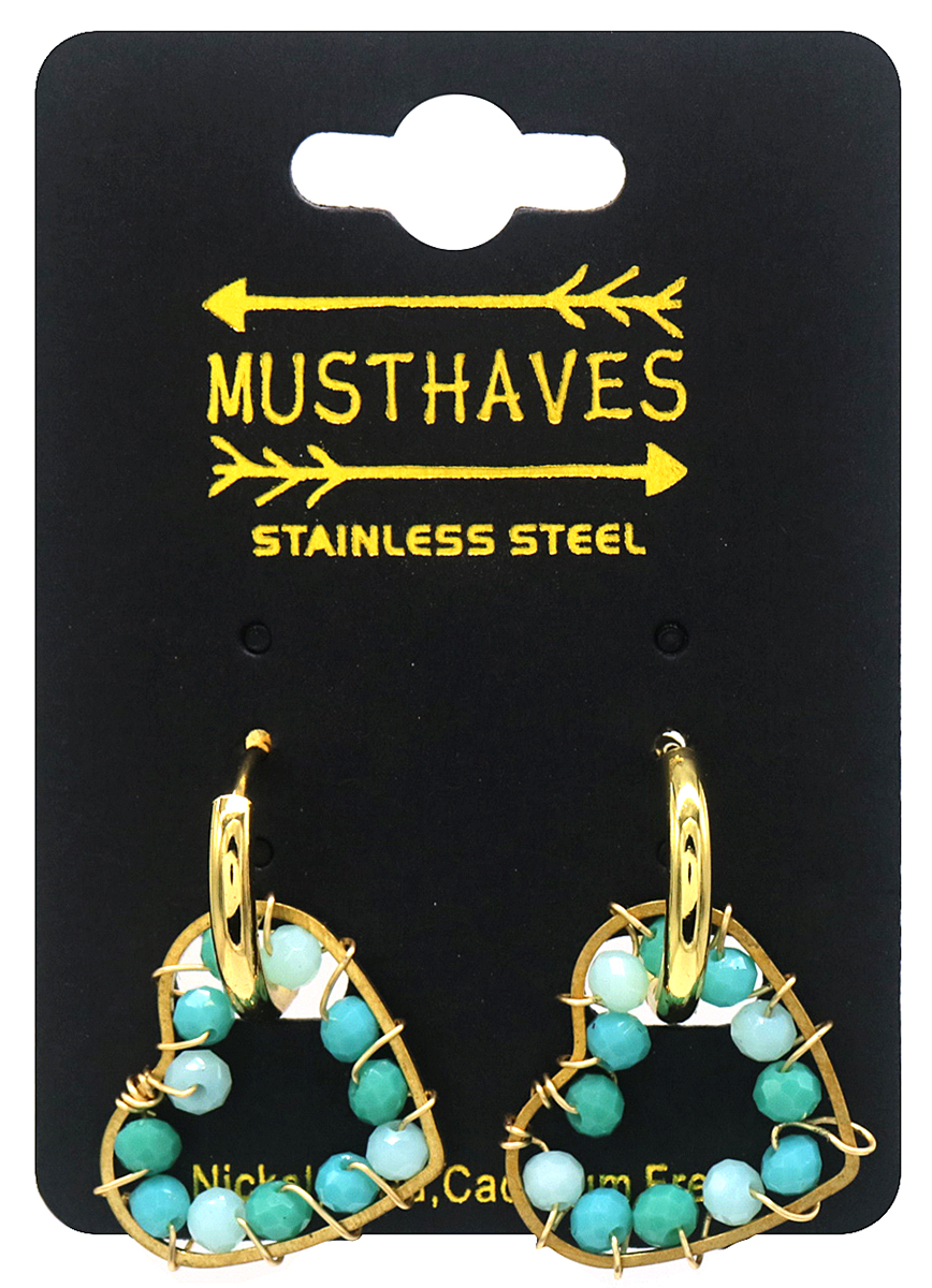 E-D17.2 E221-417G S. Steel Earrings Heart 1.5x3cm Blue