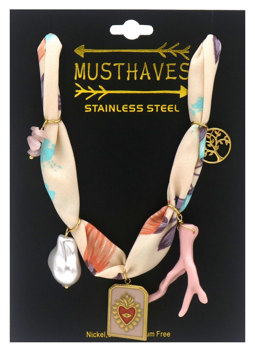 E-D21.2 N098-038 Fabric Necklace S. Steel Charms 40-45cm