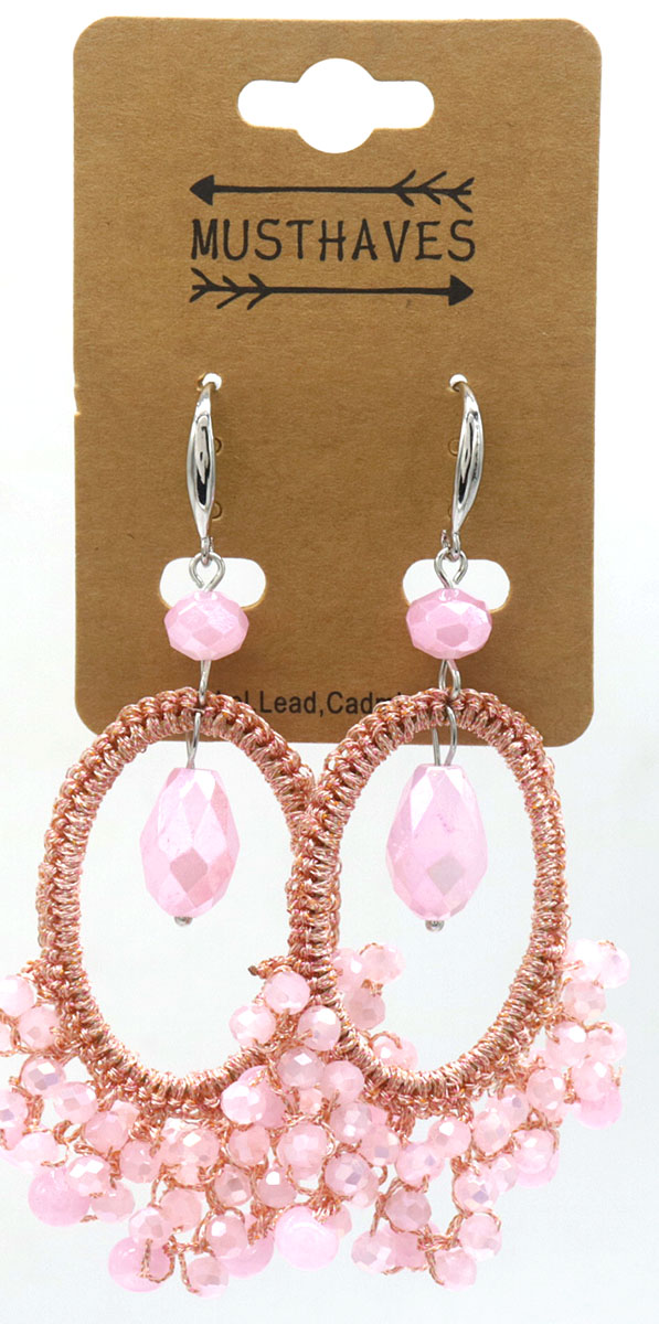 E-D7.3 E007-053D Earrings Faceted Glass 8.5x3cm Pink