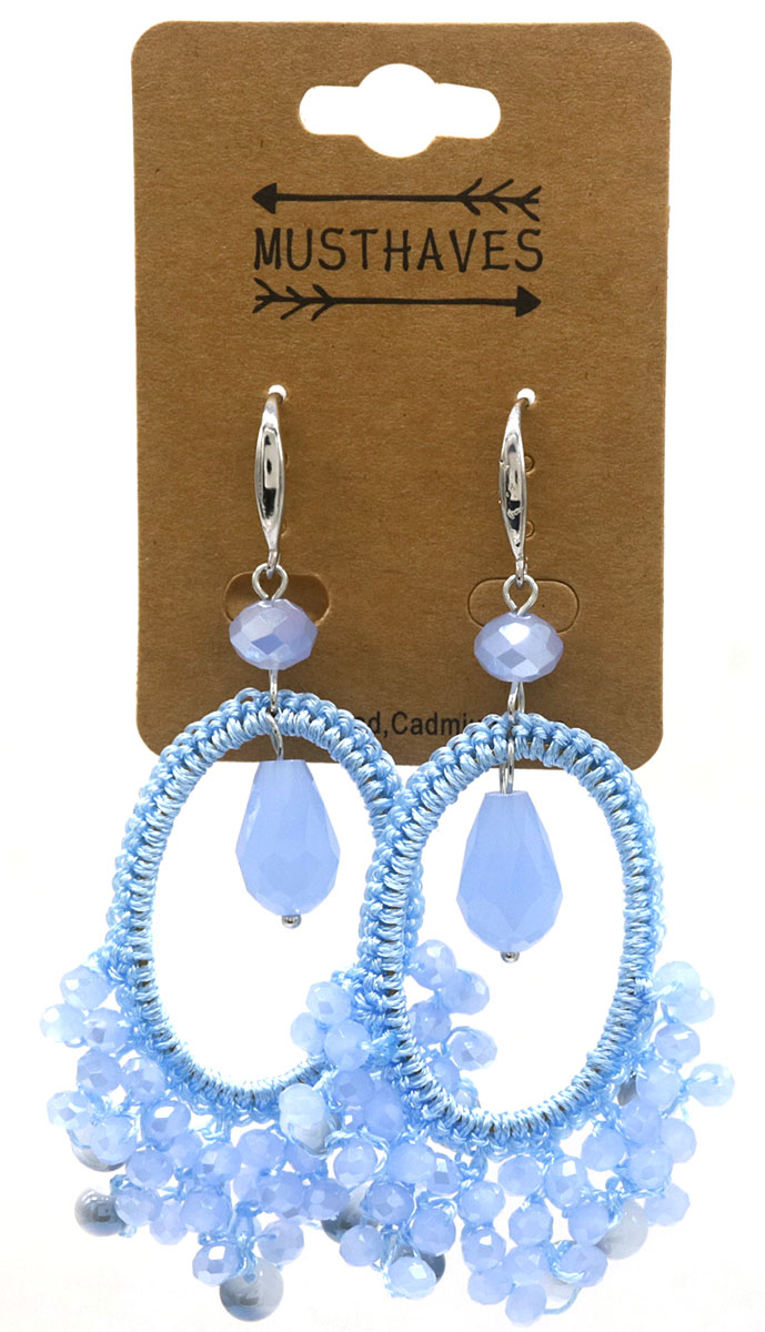 E-D7.5 E007-053F Earrings Faceted Glass 8.5x3cm Blue