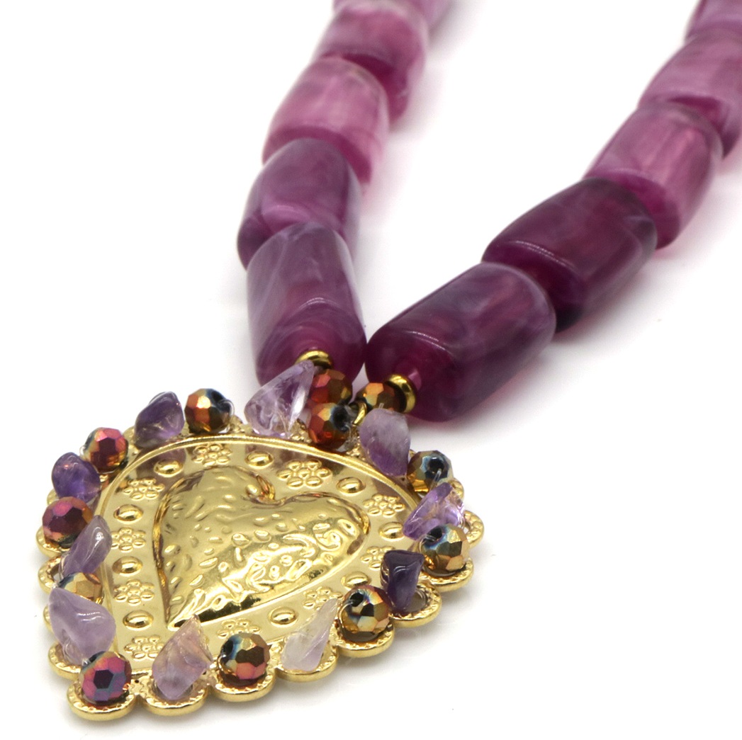 Versierd met levendige paarse acrylkralen, voegt deze ketting een vleugje kleur toe aan elke outfit, waardoor het het perfecte statement -stuk is voor zowel casual als formele gelegenheden. De verstelbare lengte van 40-45 cm zorgt voor een comfortabele pasvorm, zodat deze perfect rond uw halslijn zit.