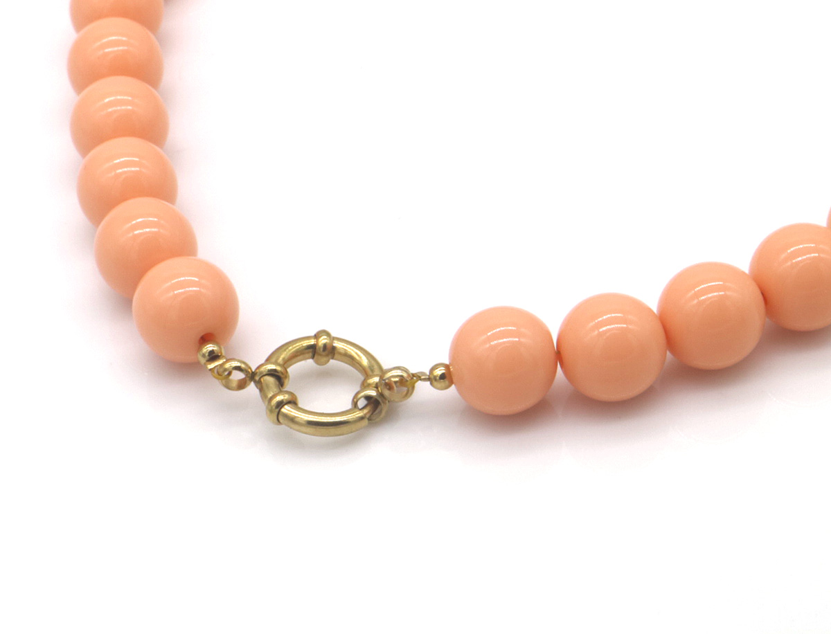 Productinformatie "F-A1.1 N1036-015-24 S. Steel Necklace 45cm Beads Salmon"