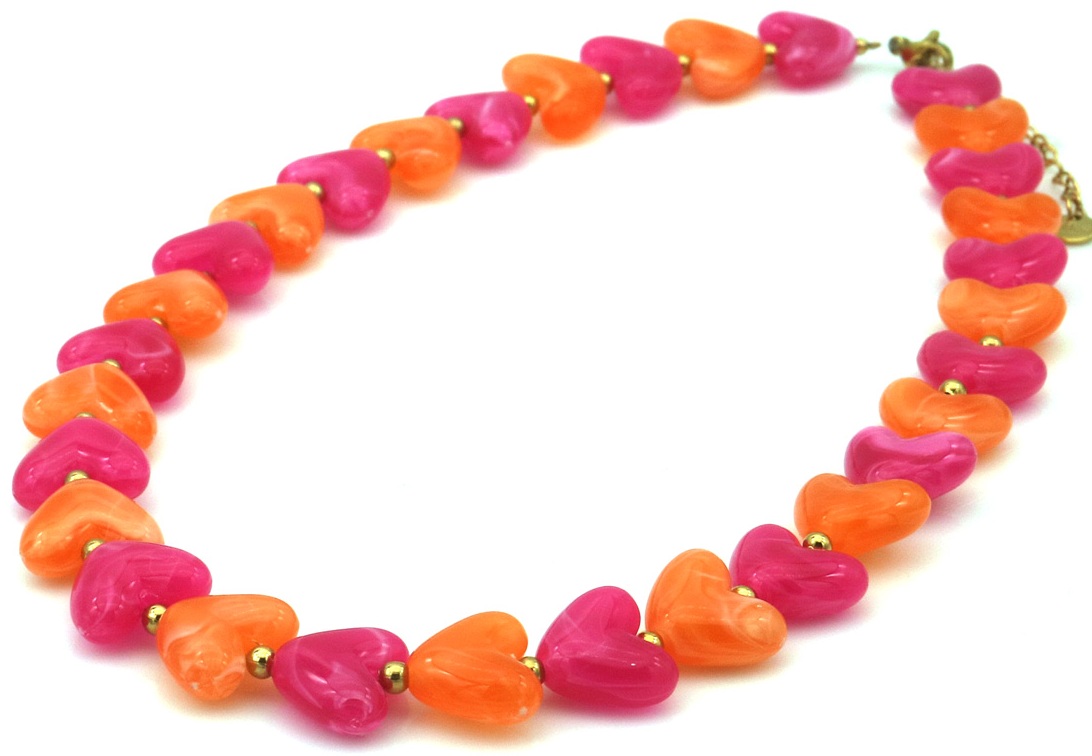 F-B2.1 N1144-009-5 S. Steel Necklace Hearts 40-45cm Pink-Orange
