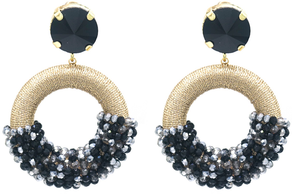 Productinformatie "F-C11.2 E827-006 No.4 Crystal Beads Earrings 5.5x4 cm Black"
