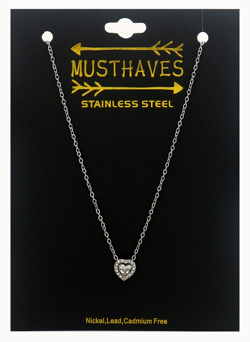 F-C5.2 N2591-036S S. Steel Necklace Crystals Heart 40-45cm