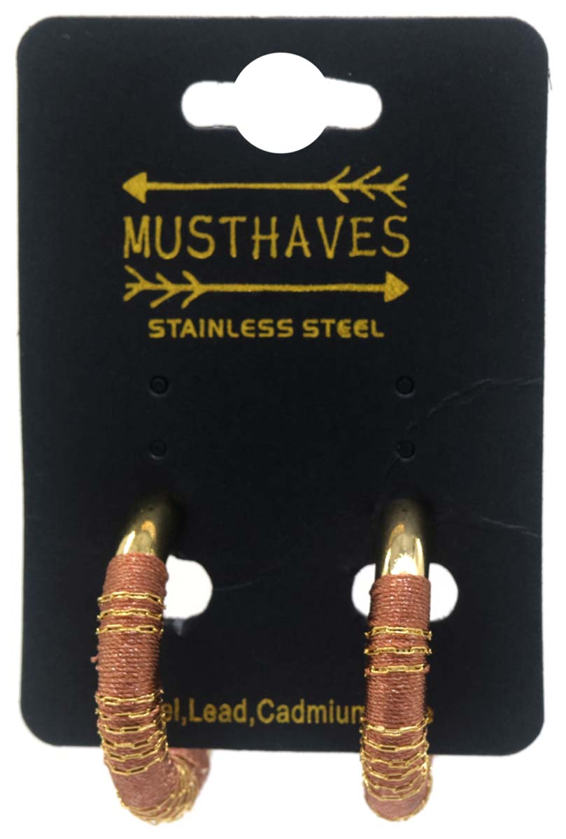 F-C6.4 E221-496 No. 7 S. Steel Earrings 3cm Brown
